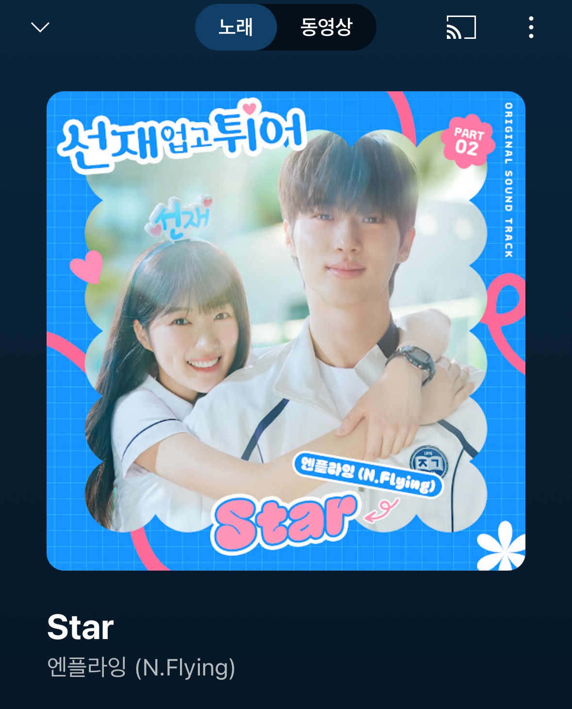 ‘Star’는 드라마 선재업고 튀어의 OST로, 드라마의 청량한 분위기를 더욱 돋보이게 만드는 곡이에요. 밴드 사운드와 엔플라잉의 두 보컬의 합이 아주 돋보이는 곡이랍니다.