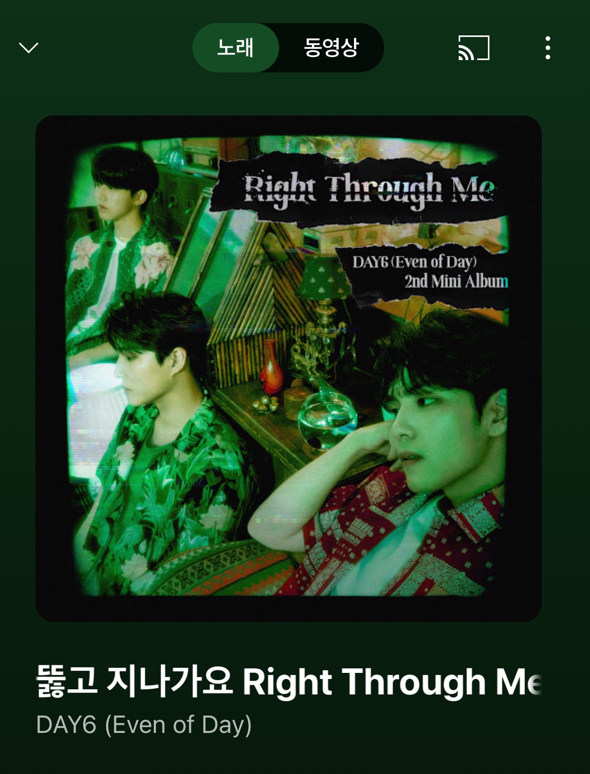 안녕하세요! 오늘은 DAY6의 첫 유닛인 Even of Day의 두 번째 미니 앨범 ‘Right Through Me’와 함께, 감성을 자극하는 타이틀곡 ‘뚫고 지나가요’ 를 가지고 왔어요. 이 곡은 정말 한 번 들으면 빠져나올 수 없는 매력이 가득한데요, 지금부터 그 매력을 하나씩 풀어보도록 할게요.